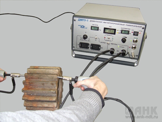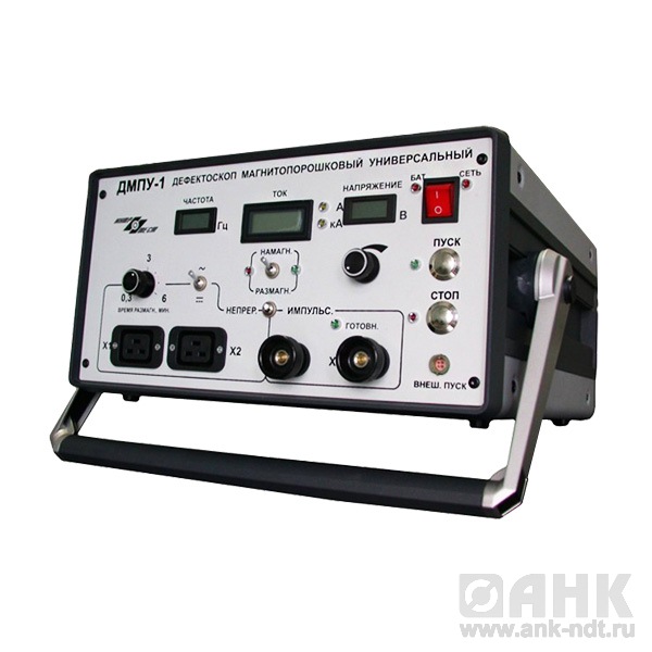 Дефектоскоп магнитный ДМПУ-1 предназначен для намагничивания изделий или их участков в режимах импульсного, переменного, постоянного поля. Импульсное намагничивание производится пропусканием тока по участку объекта или кабелем, намотанным на изделие. Намагничивание постоянным и переменным полем производится катушками или электромагнитом. Для всех режимов предусмотрено размагничивание.