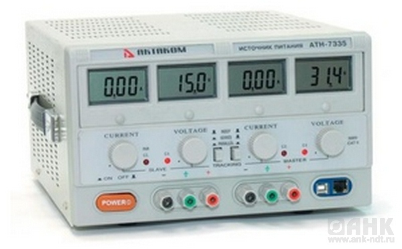 - 2х30 В, 2х3 А. Линейный. Управляемый. 2 канала. 4 цифровых 3-х разрядных LCD дисплея. Автономный режим. Последовательное и параллельное соединение каналов в автон.режиме. Дистанционное управление от ПК по USB и LAN. Режимы управления током и напряжением: произвольный, по закону, фиксированные значения. Режим повышенной точности индикации
