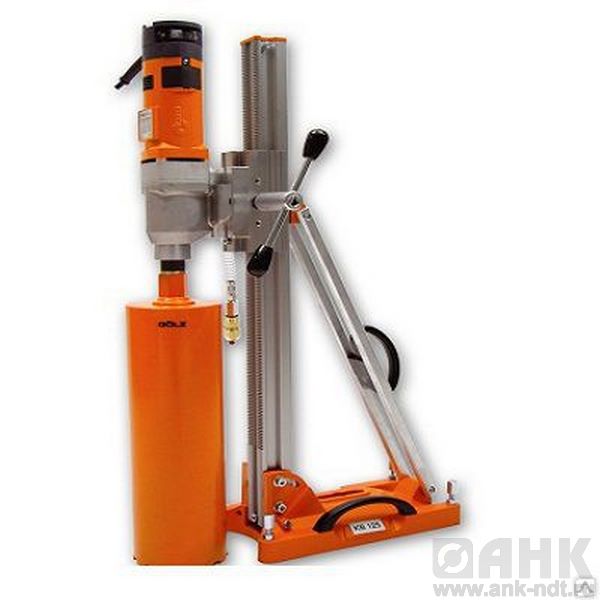 Установка алмазного бурения Goelz КВ-125 рассчитана на бурение бетона, армированного бетона, природного и синтетического камня, асфальта, алмазными колонковыми бурами с подачей воды для отверстий диаметром от 20 до 162 мм.