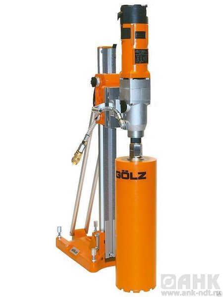 Установка алмазного бурения Goelz КВ-250 рассчитана на бурение бетона, армированного бетона, природного и синтетического камня, асфальта, алмазными колонковыми бурами с подачей воды для отверстий диаметром от 20 до 300 мм.