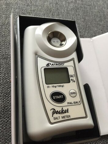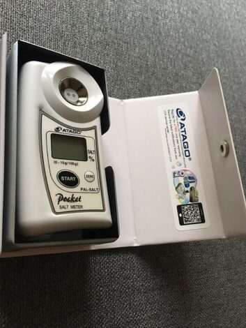 Цифровой солемер PAL-SALT использует метод электропроводимости для измерения уровня солёности растворимых веществ в жидкости. PAL-SALT является первым солемером ATAGO со встроенной функцией оффсeта, позволяющей выводить результаты с автоматическим вычислением поправочного коэффициента. Данную функцию можно использовать, например, для автоматического ввода коэффициента разбавления или для ввода собственного поправочного коэффициента, который позволит получать результаты, согласующиеся с методом титрования. Для калибровки или проверки точности работы солемера Вы можете приобрести ГСО «NaCl» номиналом 2,5%. Поверка солемера PAL-SALT осуществляется в аккредитованной лаборатории АНК и занимает от 1 до 5 дней.